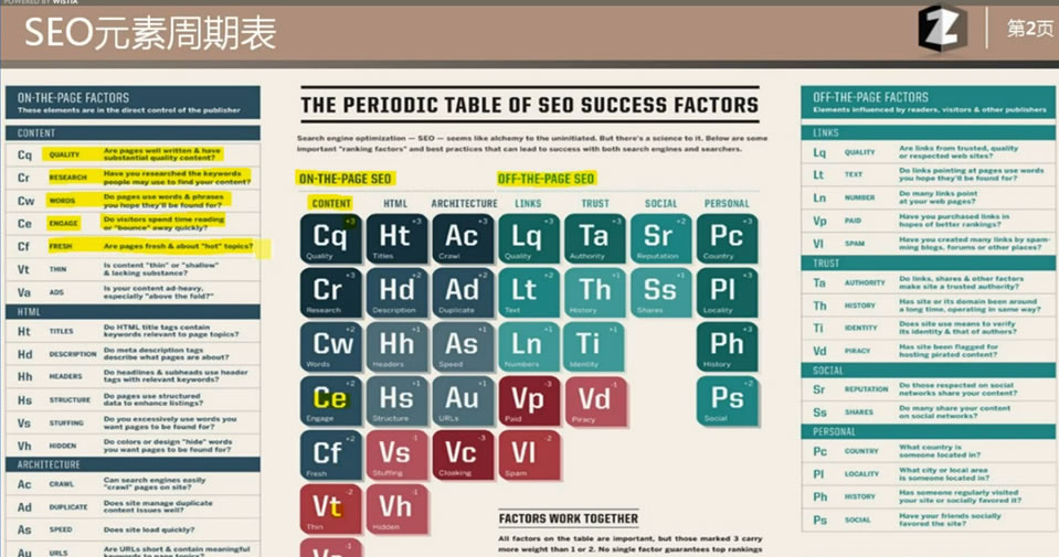 首先咱們要搞清楚怎么看這個(gè)周期表,它其實(shí)就是化學(xué)元素周期表的描摹,用可視化規(guī)劃體現(xiàn)出查找引擎優(yōu)化元素對(duì)于整個(gè)算法系統(tǒng)的重要性。